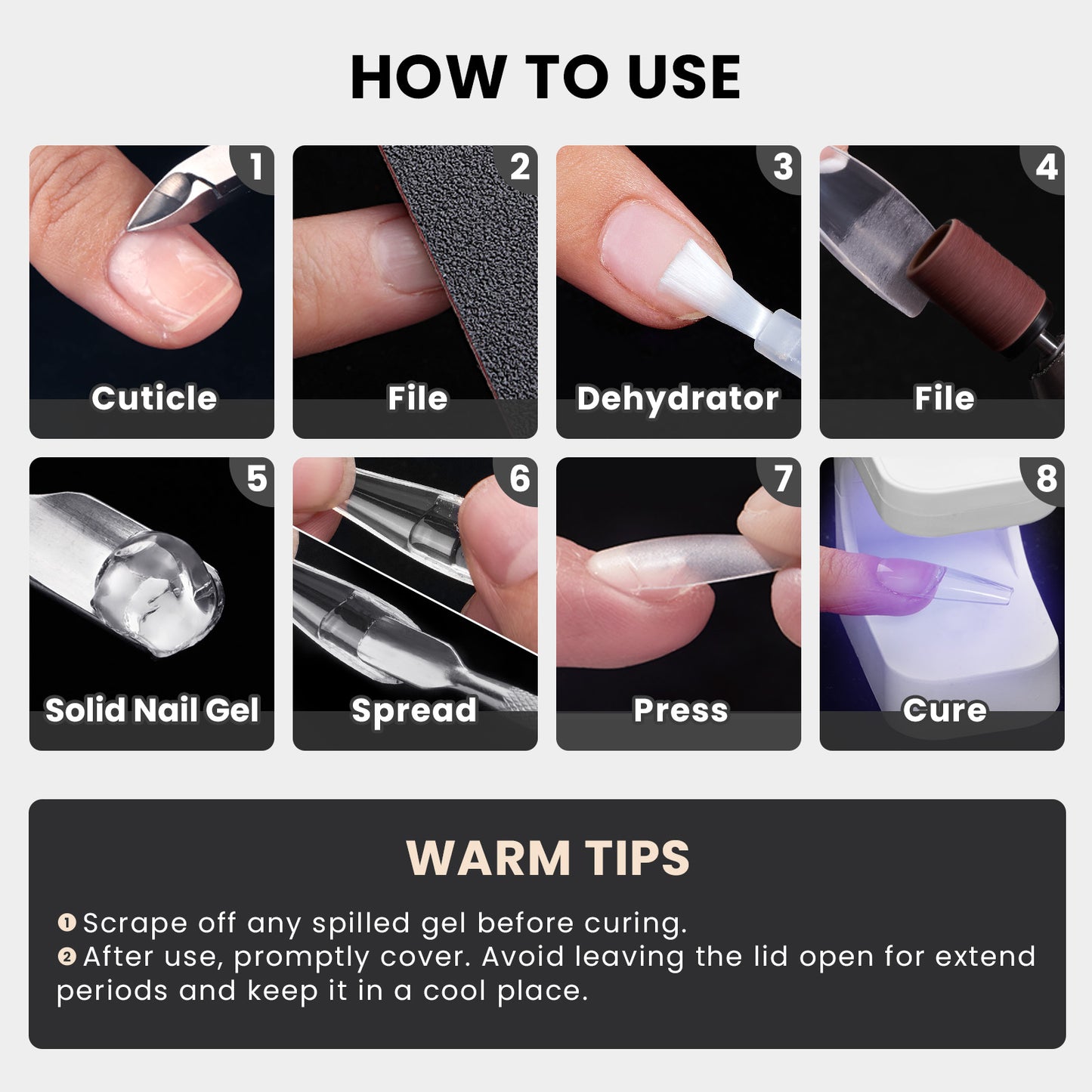 Langlebig, mehr als 28 Tage: BTArtbox Gel-Nagelkleber füllt jeden Raum zwischen dem Naturnagel und der Verlängerung vollständig aus. Sie können die Nagelverlängerung schnell innerhalb von 3 Minuten erreichen und erhalten dann eine super haltbare und stark klebende Nagelverstärkung. Bis zu 28 Tage lang ist kein Abblättern, Absplittern, Verschieben oder Abplatzen des Naturnagels mehr erforderlich.