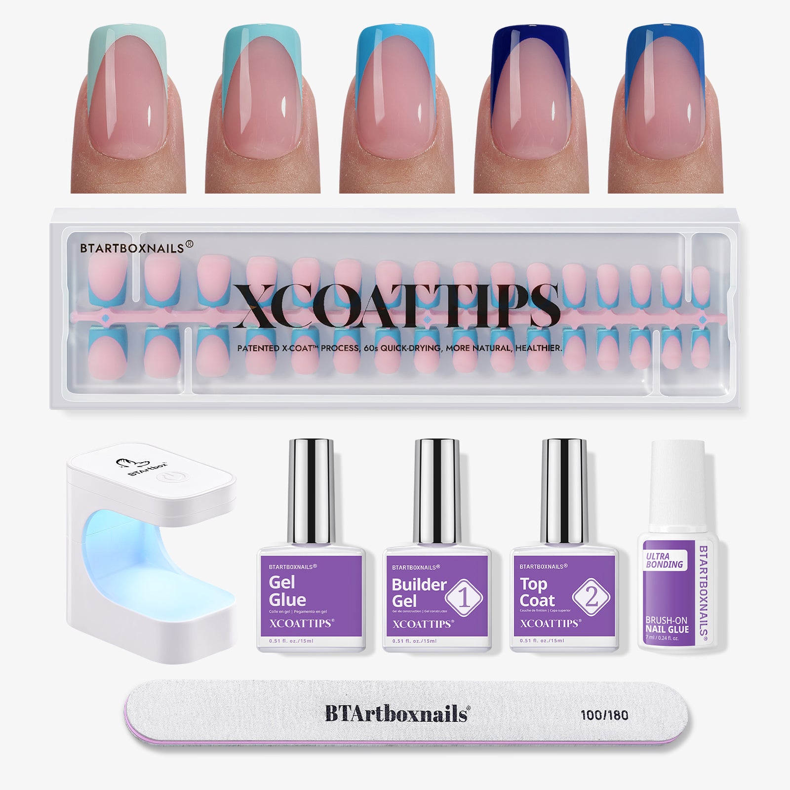 XCOATTIPS® Blue Pastel French Kit - Kurzes Quadrat