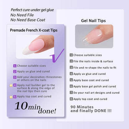 • Wear XCOATTIPS® with UV gel, then apply French Protecting Duo and seal them, easily get a Salon manicures done in 30 minutes!!!