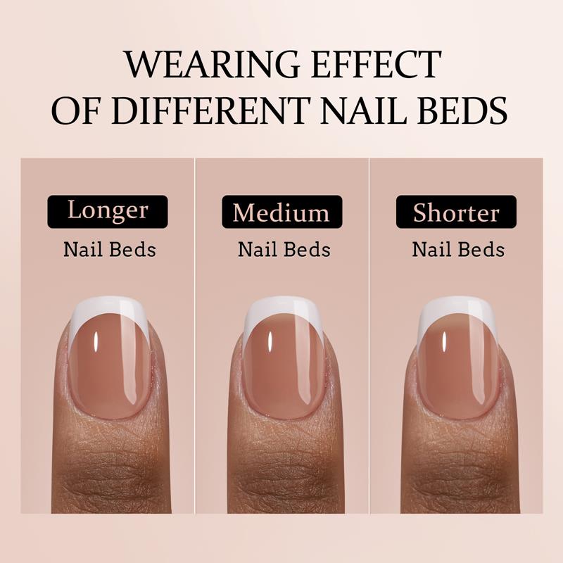 • Scientific thickness design, no pressure pain and not easy to break. Total 15/16 sizes always could fit your nail bed.