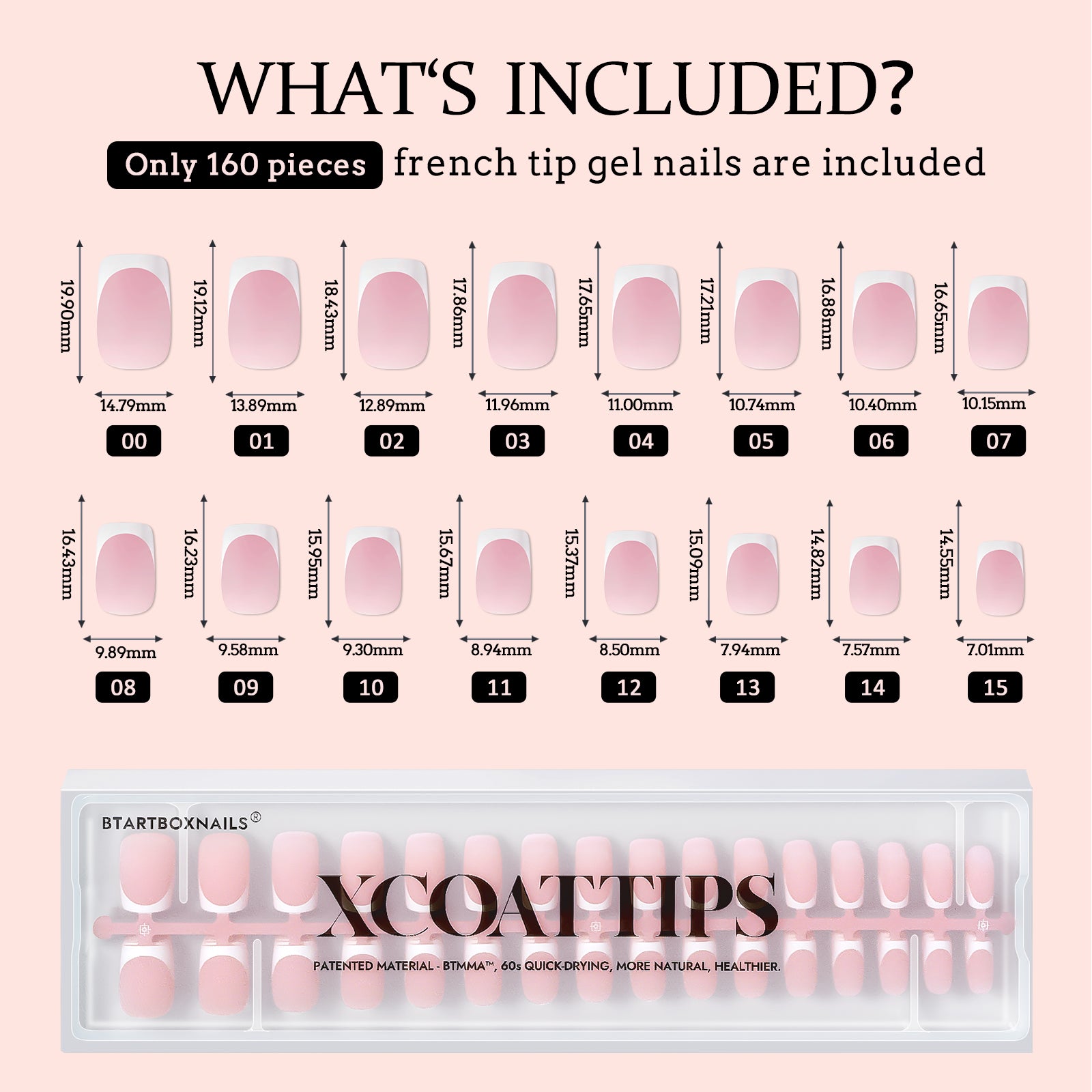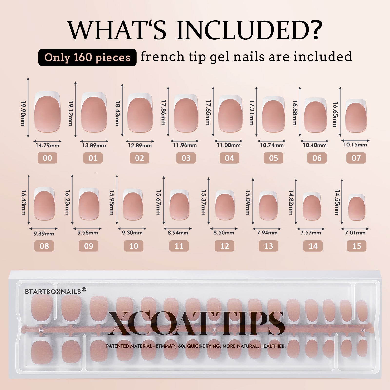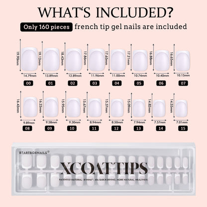 XCOATTIPS® French - Short Square will save you time and money, with their quick design and hard quality! Upgrade 15/16 sizes always fit your nail bed. Enjoy long-lasting over 30 days. Stun you with pre-French and pre-shape design - it's never been easier!