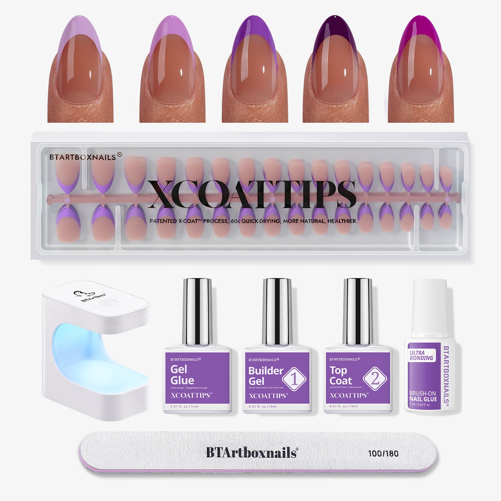 XCOATTIPS® Purple Pastel French Kit - Short Almond
