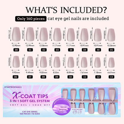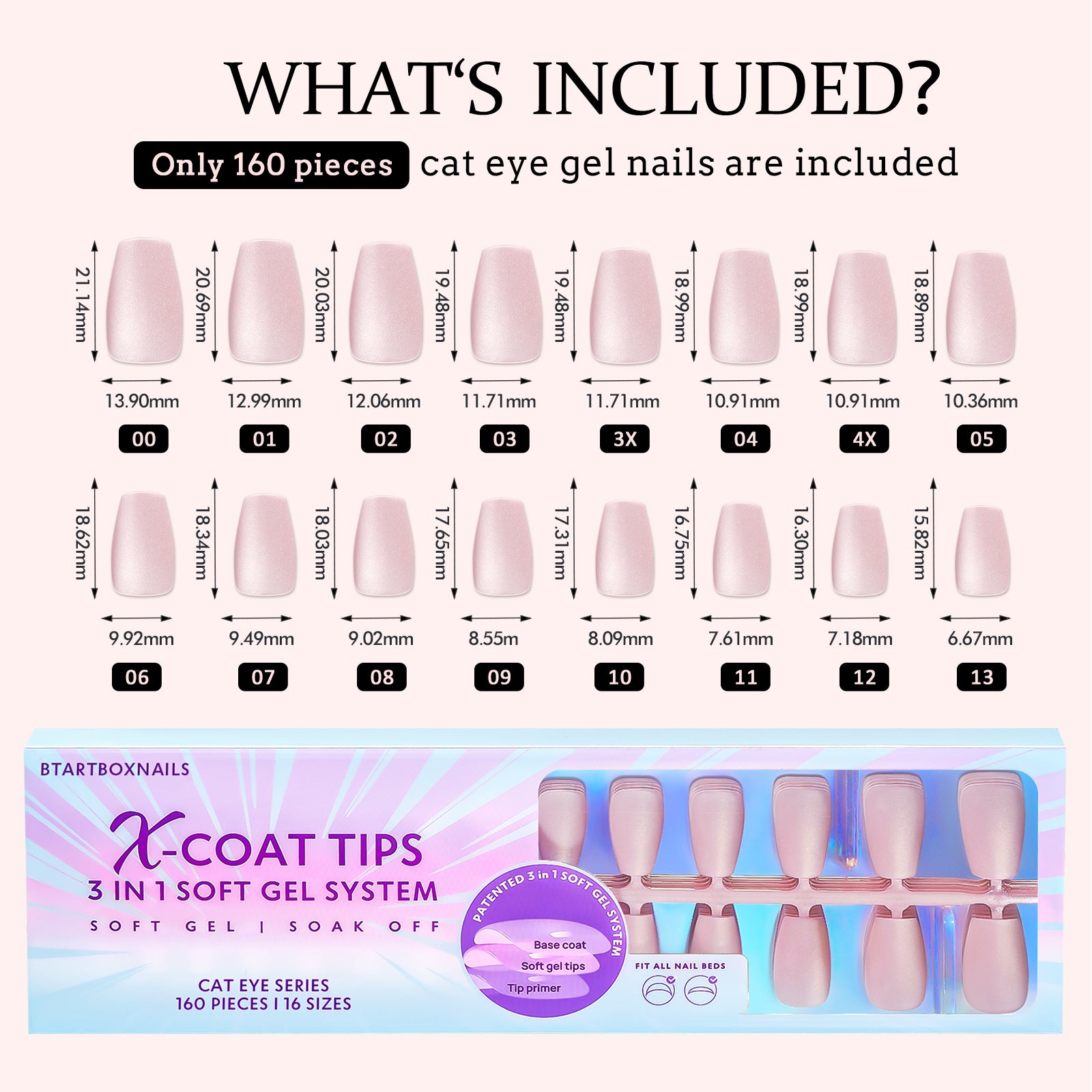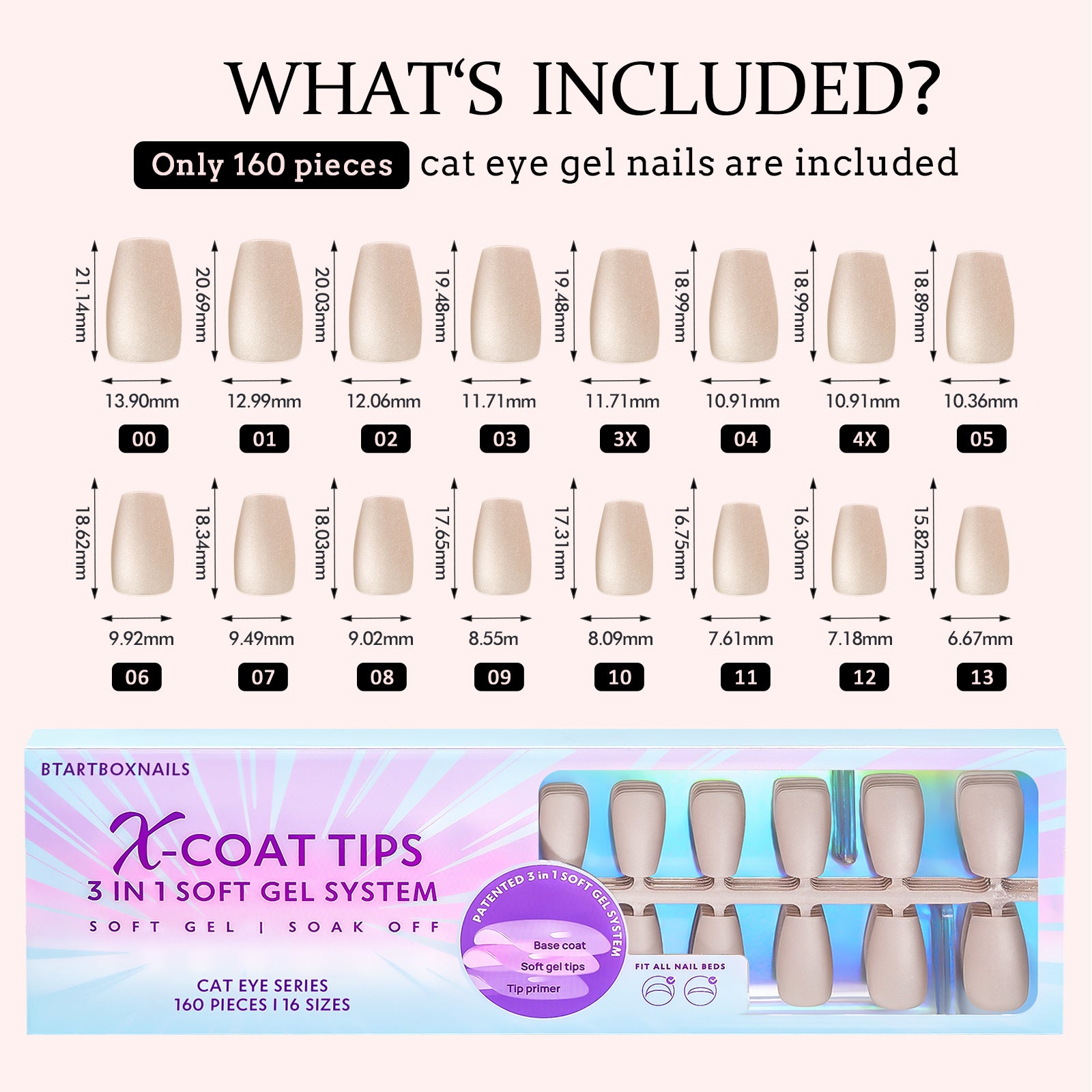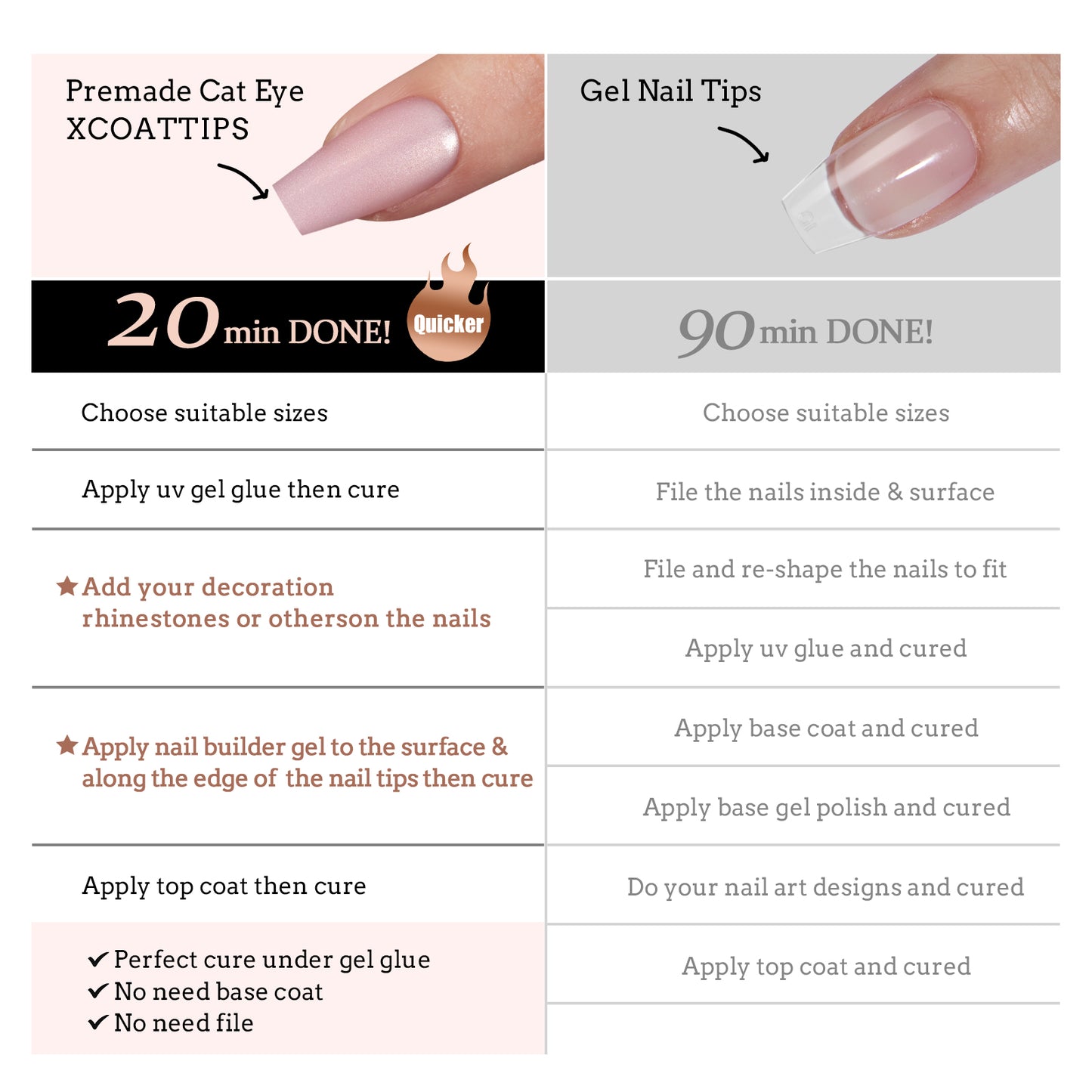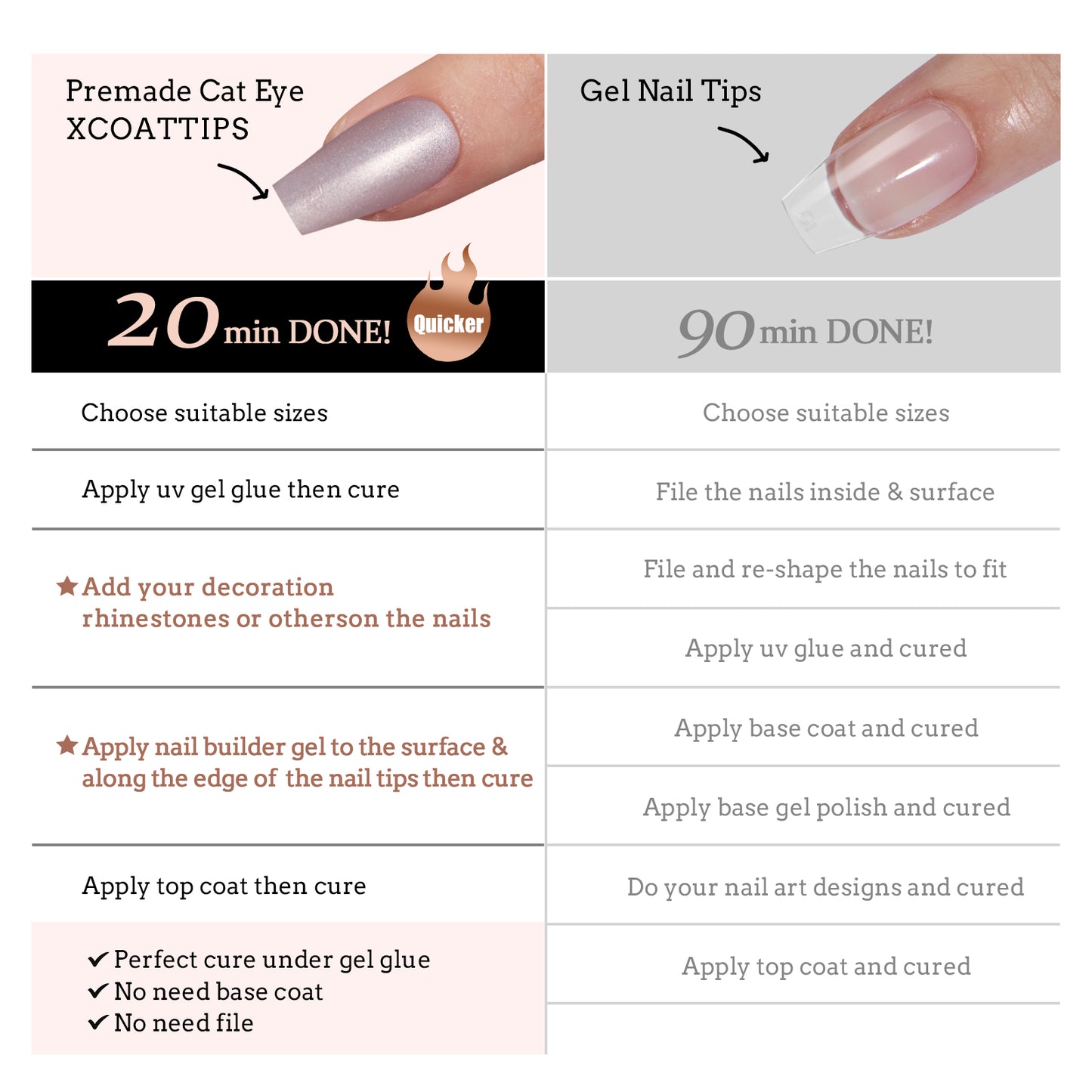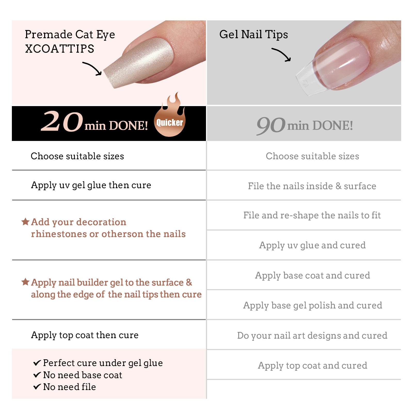 XCOATTIPS® Cat Eye - Coffin will save you time and money, with their quick design and hard quality! Upgrade 15/16 sizes always fit your nail bed. Enjoy long-lasting over 30 days. Stun you with pre-cat eye and pre-shape design - it's never been easier!