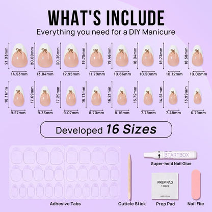 Lovely, natural, and french. These words come to mind at first glance when you see these nails. The naughty and cute golden bow makes the already monotonous French design more lively;Great for gift giving.
