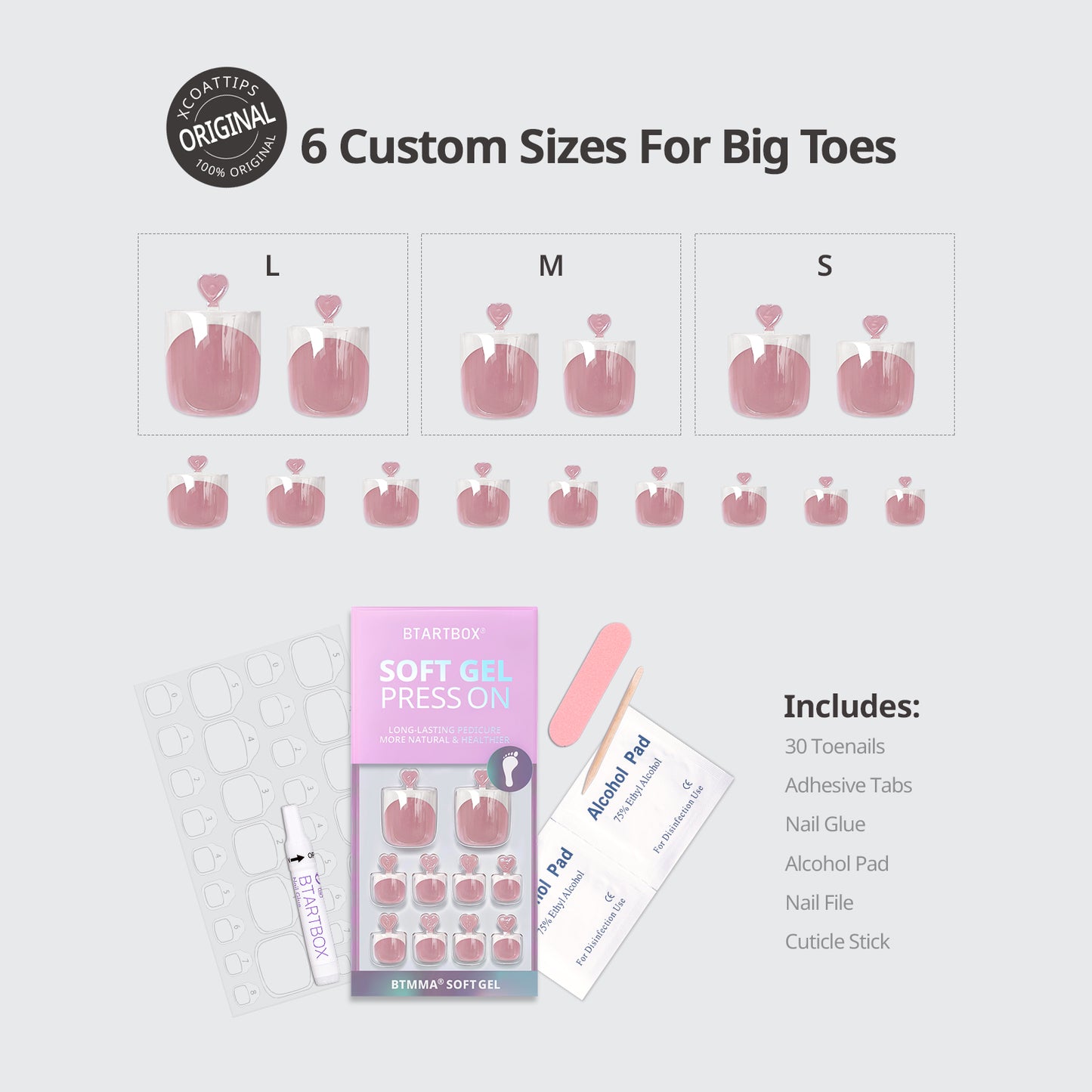 BTArtbox Press on toenails are made from newest soak off soft gel material, which is more malleable and more natural. 4X thicken(2mm) BTArtbox press on toe nails help hold toenails in place to prevent ingrown.