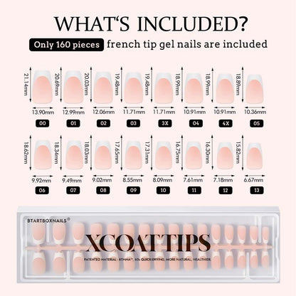 XCOATTIPS® French - Short Coffin will save you time and money, with their quick design and hard quality! Upgrade 15/16 sizes always fit your nail bed. Enjoy long-lasting over 30 days. Stun you with pre-French and pre-shape design - it's never been easier!