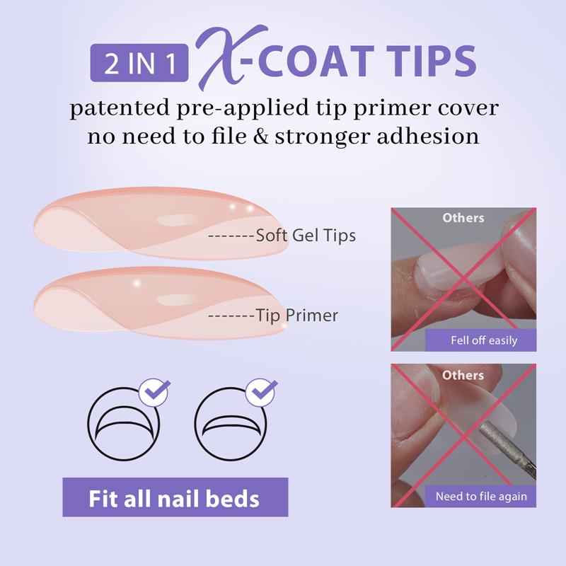 X-COAT® process imitates the shape of handmade acrylic nails, helps to get the nails more salon-like. Free edge: