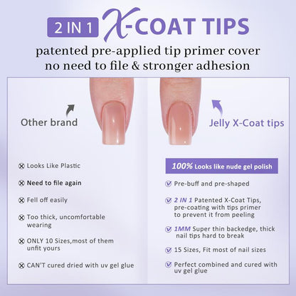 XCOATTIPS® Natural - Short Square will save you time and money, with their quick design and hard quality! Upgrade 15/16 sizes always fit your nail bed. Enjoy long-lasting over 30 days. Stun you with pre-color and pre-shape design - it's never been easier!