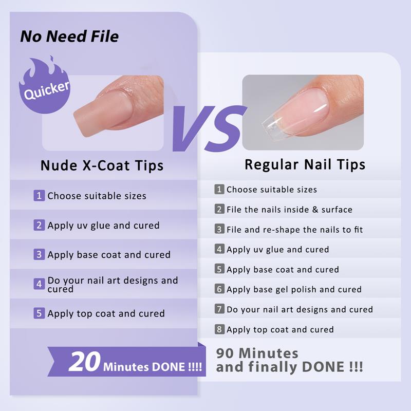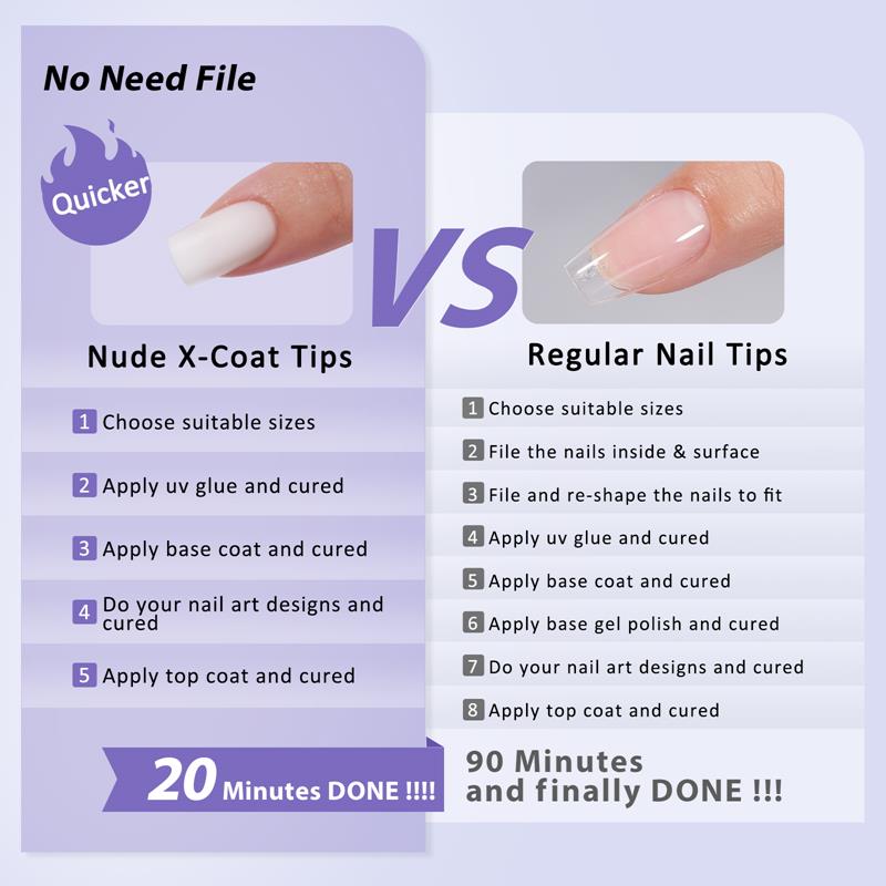 • Wear XCOATTIPS® with UV gel, then apply French Protecting Duo and seal them, easily get a Salon manicures done in 30 minutes!!!