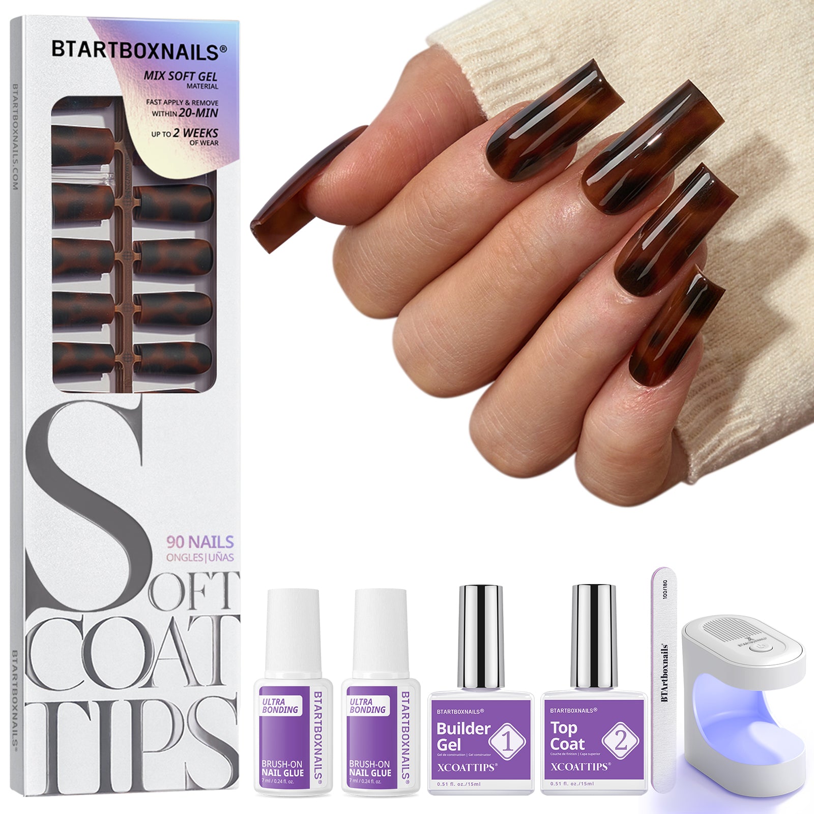 SOFTCOATTIPS™ Tortoiseshell - Long Square will save you time and money, with their quick design and hard quality! Upgrade 15/16 sizes always fit your nail bed. Enjoy long-lasting over 14 days.