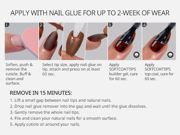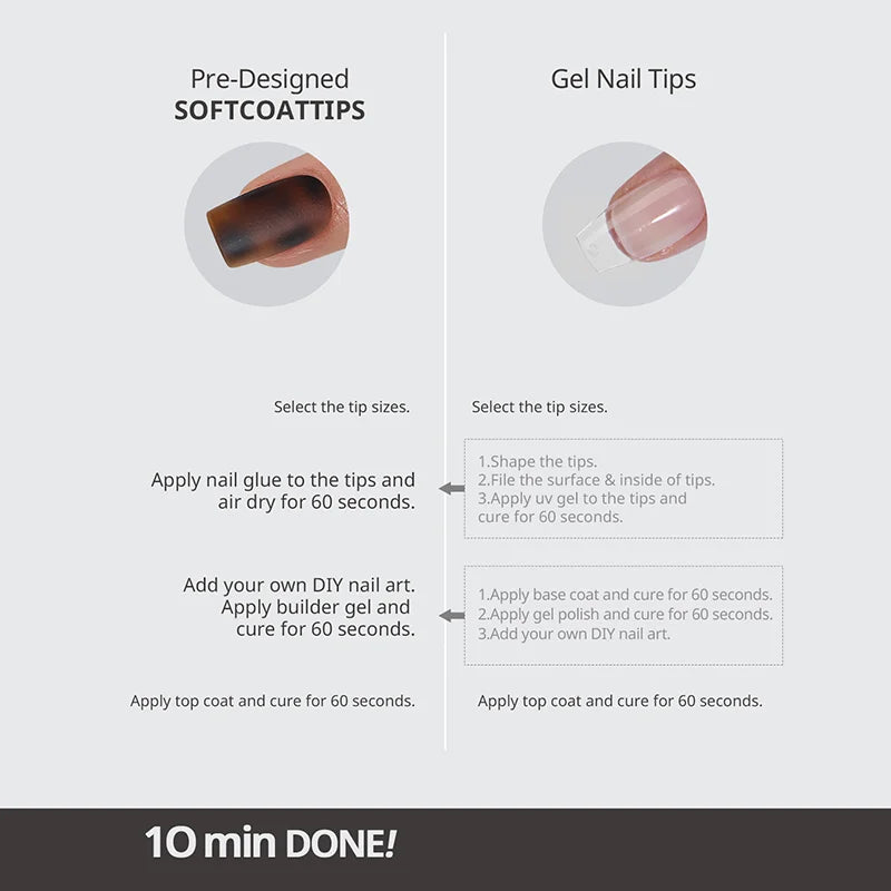 SOFTCOATTIPS™ Tortoiseshell - Short Almond will save you time and money, with their quick design and hard quality! Upgrade 15/16 sizes always fit your nail bed. Enjoy long-lasting over 14 days.