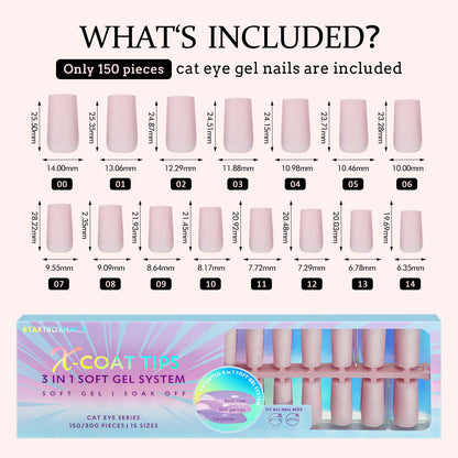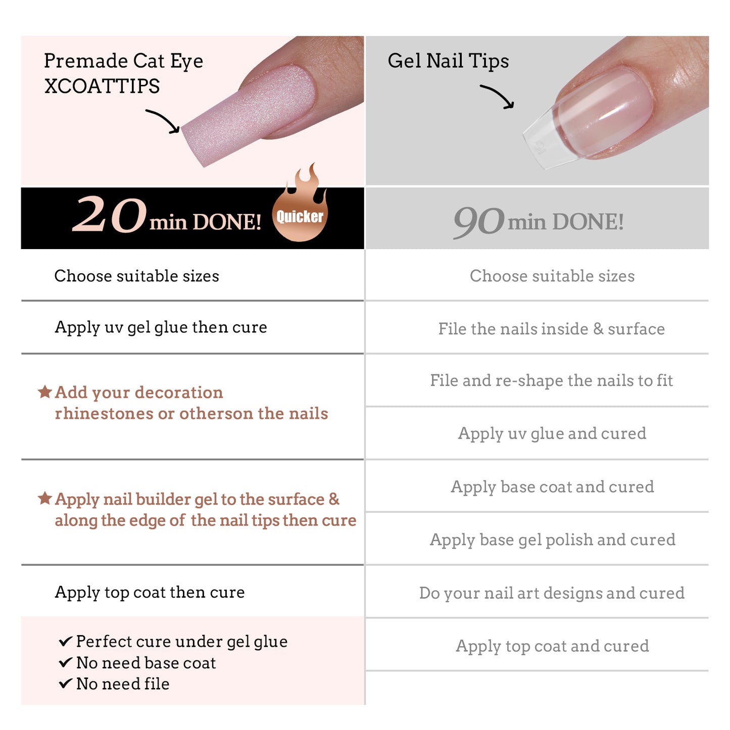 XCOATTIPS® Cat Eye - Milky Way- Square will save you time and money, with their quick design and hard quality! Upgrade 15/16 sizes always fit your nail bed. Enjoy long-lasting over 30 days. Stun you with pre-cat eye and pre-shape design - it's never been easier!