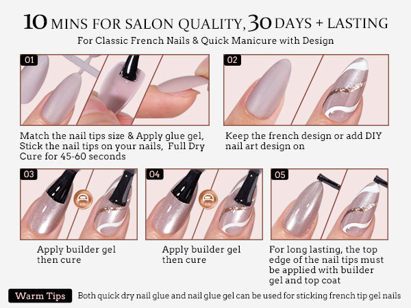 • Wear XCOATTIPS® with UV gel, then apply French Protecting Duo and seal them, easily get a Salon manicures done in 30 minutes!!!