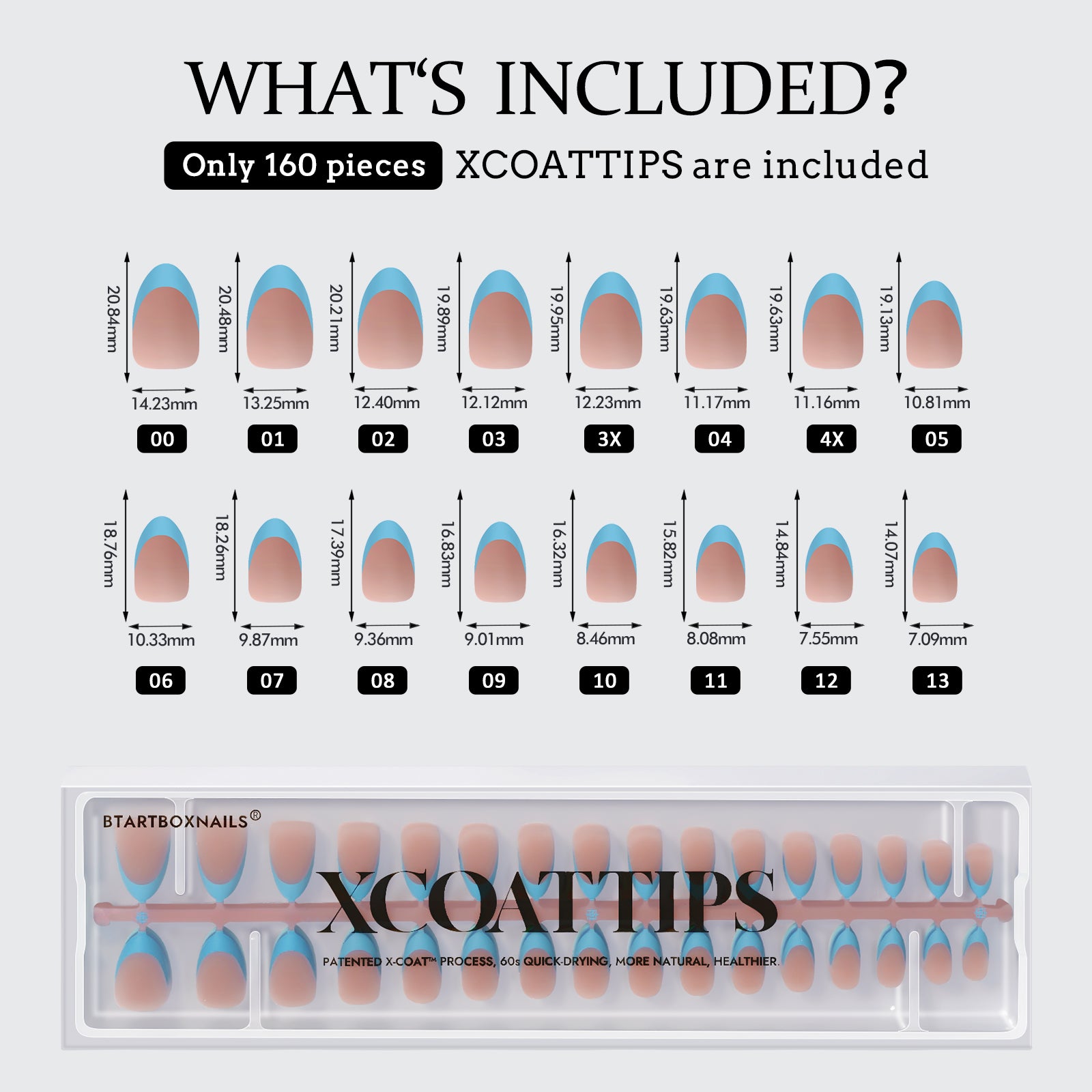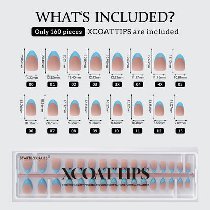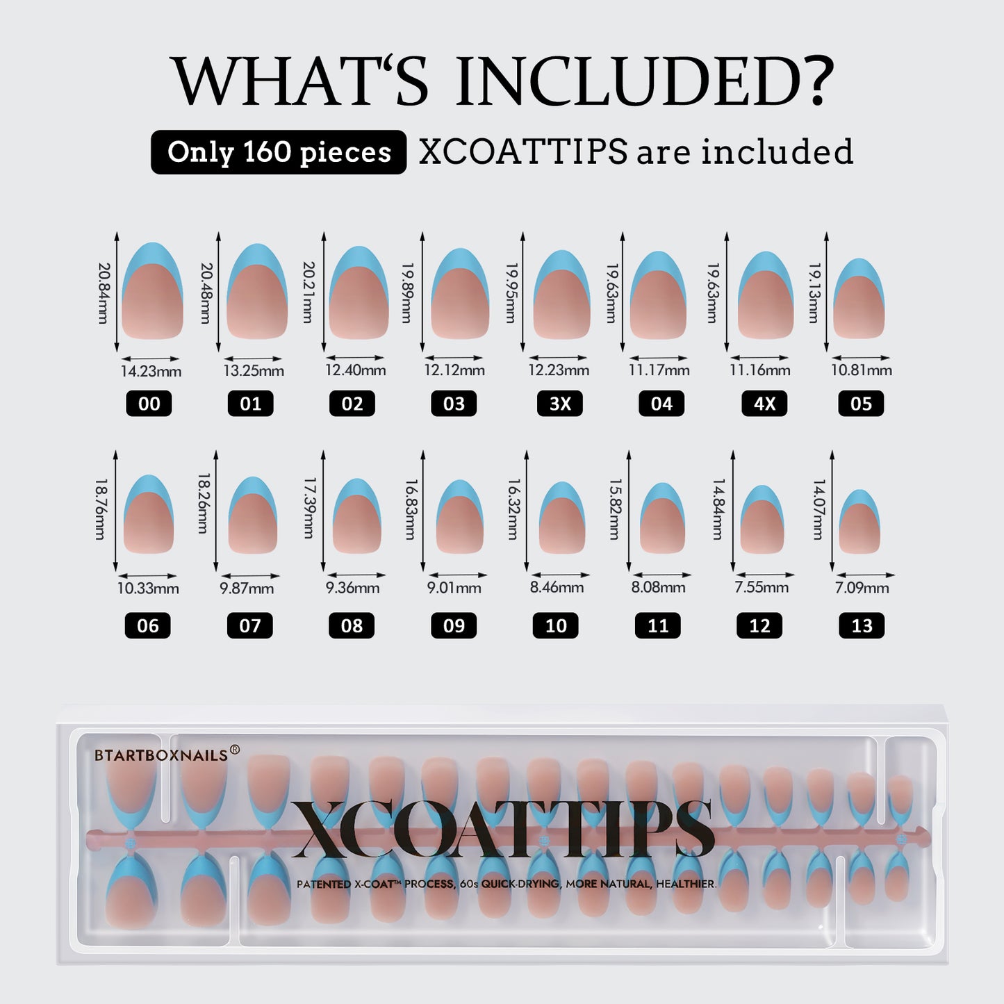 XCOATTIPS® French - Short Almond Blue Pastel Tips