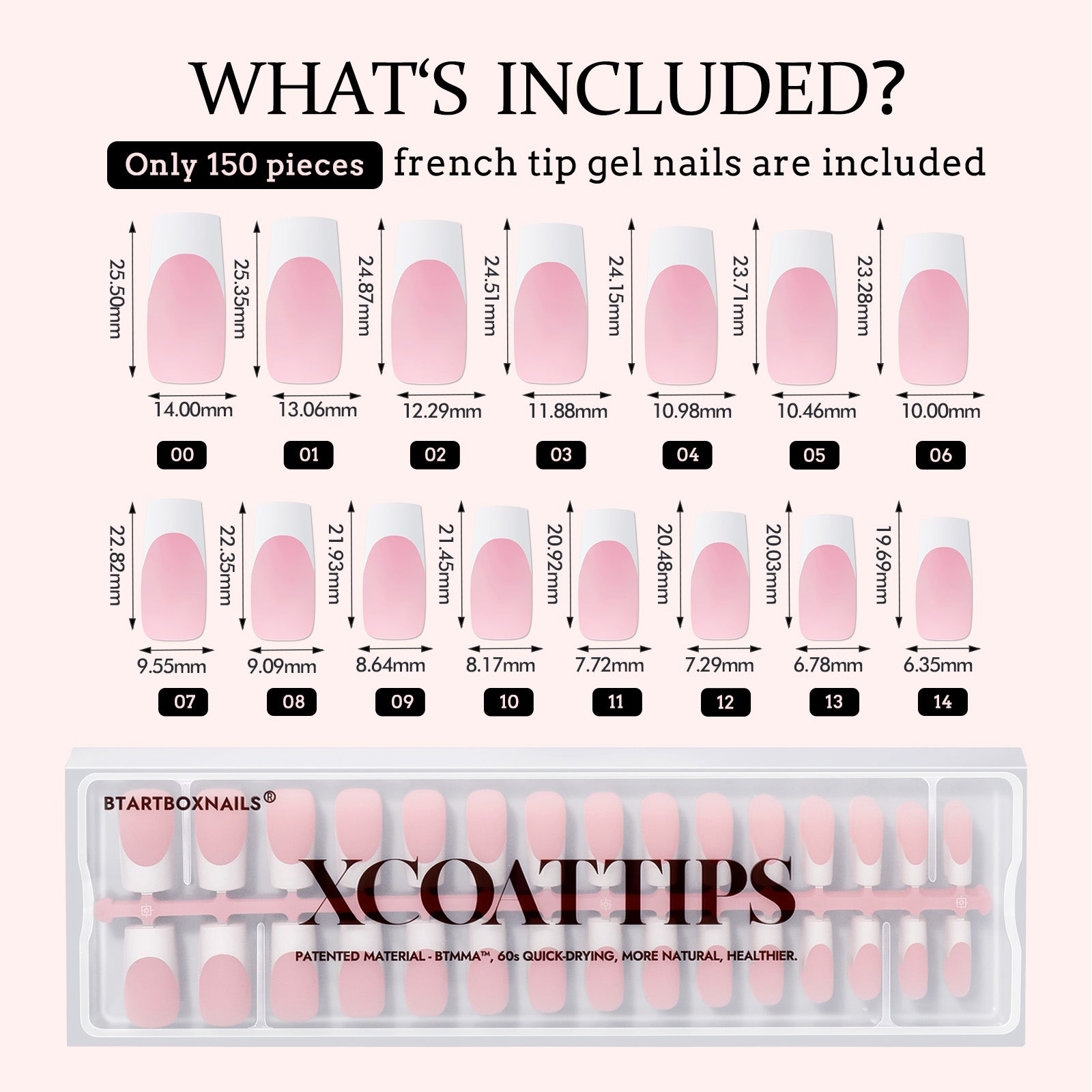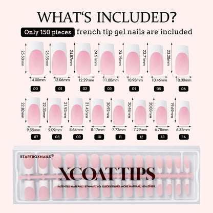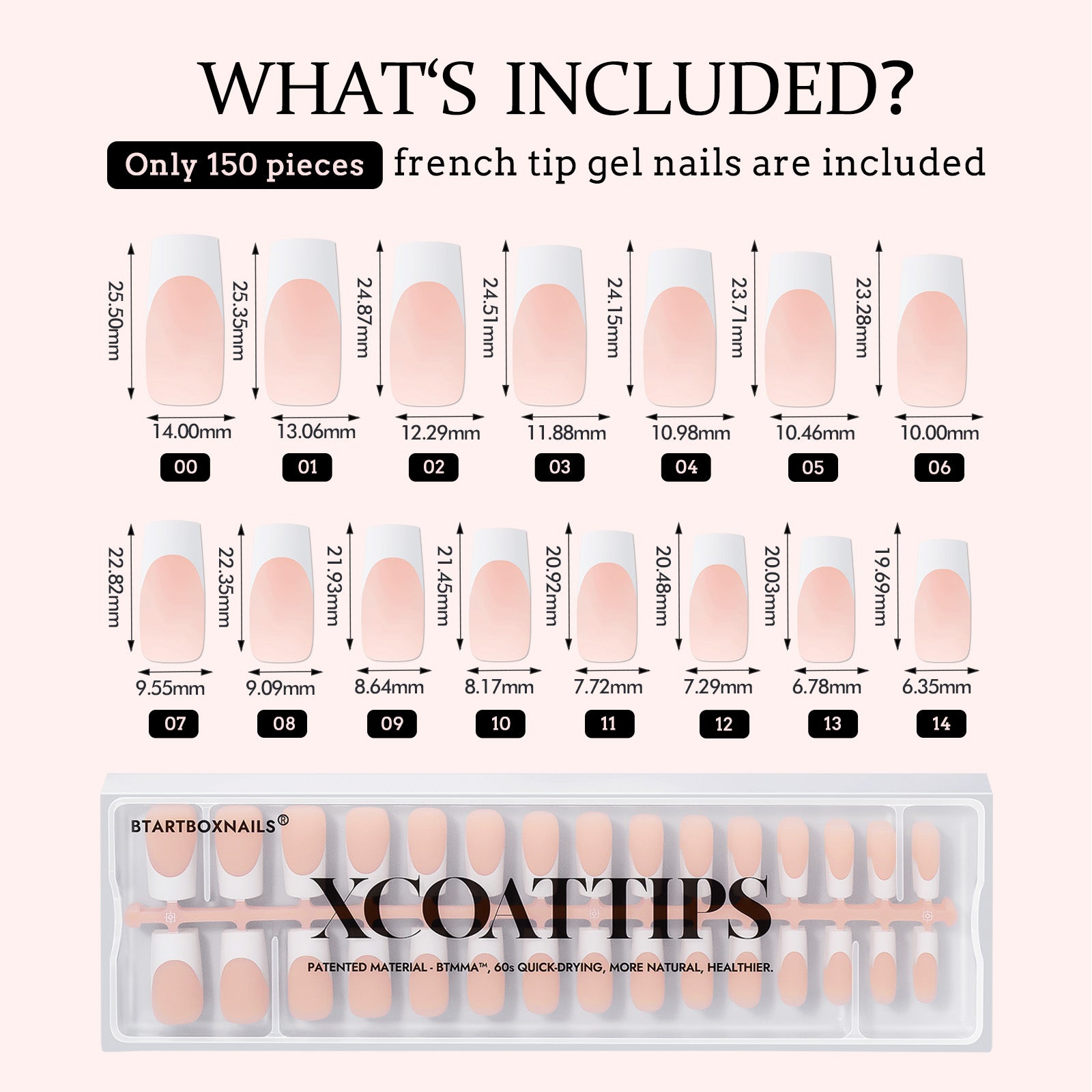 XCOATTIPS® French - Long Square will save you time and money, with their quick design and hard quality! Upgrade 15/16 sizes always fit your nail bed. Enjoy long-lasting over 30 days. Stun you with pre-French and pre-shape design - it's never been easier!