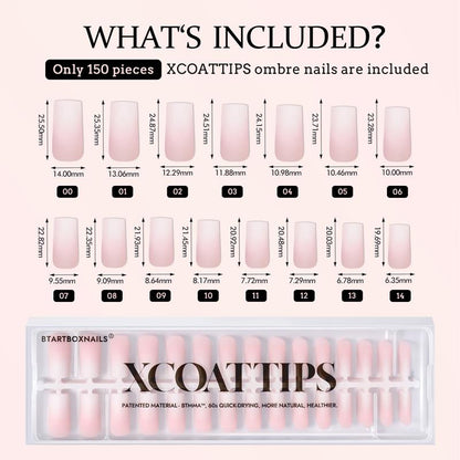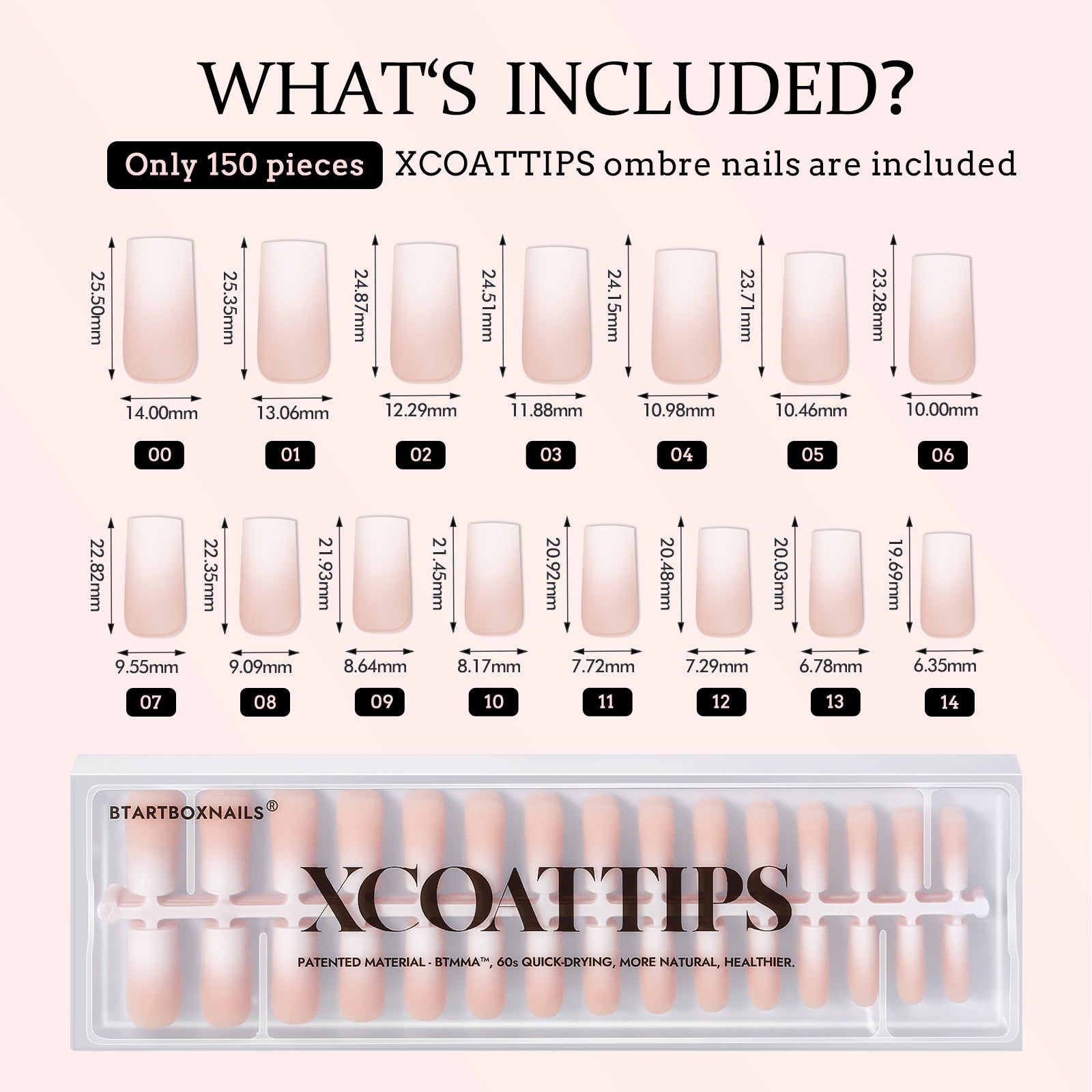 XCOATTIPS® French - Long Square will save you time and money, with their quick design and hard quality! Upgrade 15/16 sizes always fit your nail bed. Enjoy long-lasting over 30 days. Stun you with pre-French and pre-shape design - it's never been easier!