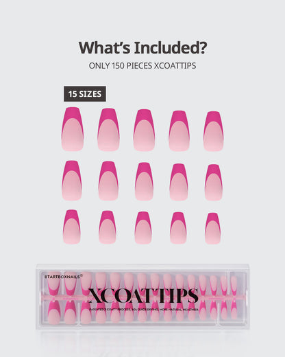 • Combined with specially patented materials and patented XCOAT process, XCOATTIPS® helps people to solve many technical problems such as shaping, color matching, and nail apex buidling.