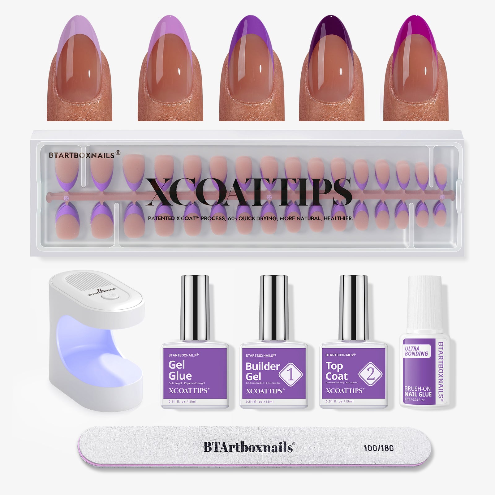 Check out our collection and find the ideal glue on nails to make your hands and feet look fabulous. Don't miss out on our other products to complete your look. Go for our French XCOATTIPS toenails for tidy toes, premium press-ons and fake nails for a hassle free manicure, classic short almond nails kits for an elegant touch, or nail extensions for some extra flair. With these choices, you can mix up your style however you like.