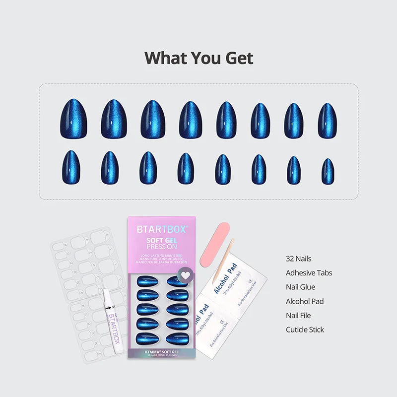 32*nail tips, 1*2G glue, 1*mini nail file, 1*cuticle stick, 32*jelly tabs, 1*clean pad, 1*manual