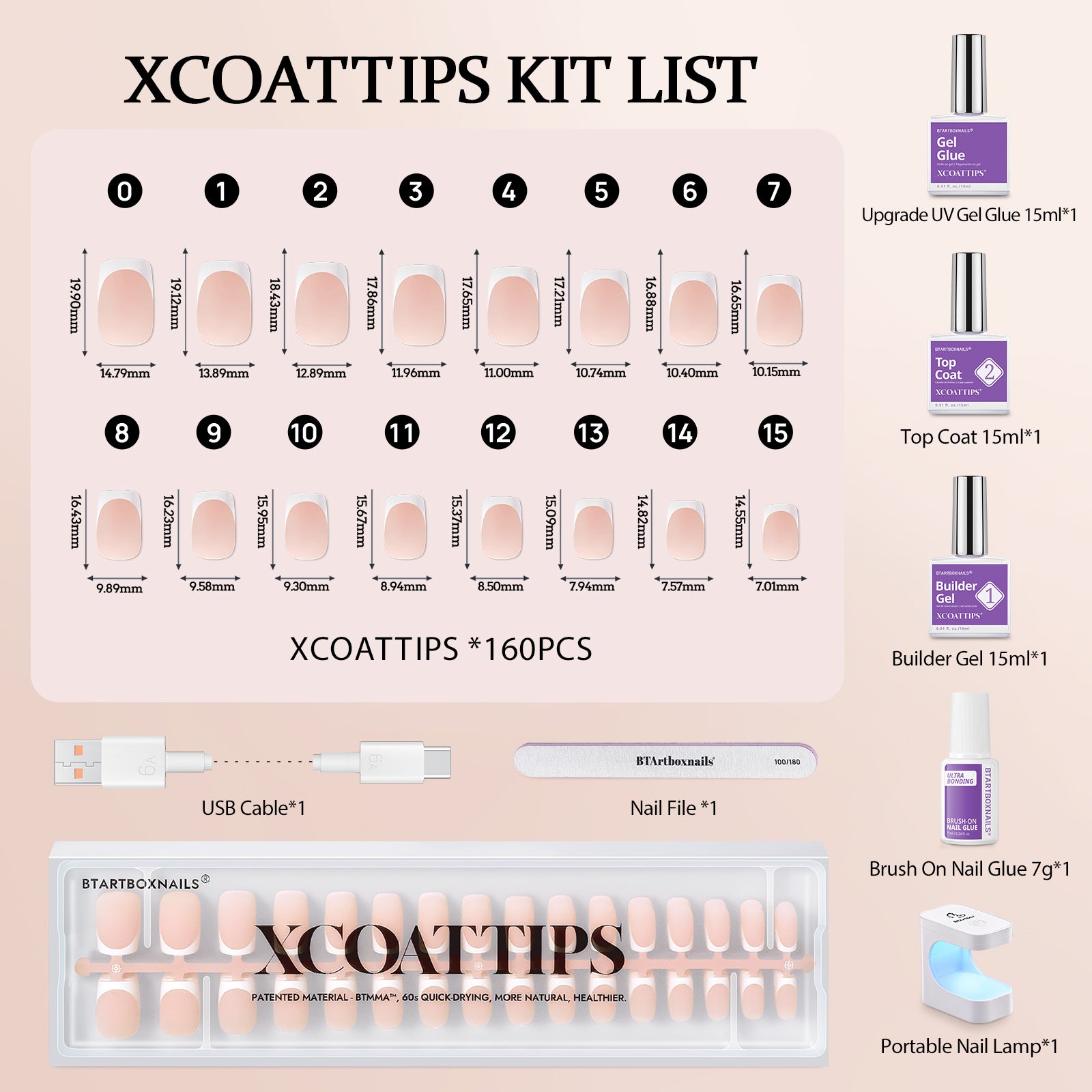 - Kit Include:Nail Tips 150pcs*1, UV Glue 15ml*1, Builder Gel 15ml (Improved formula)*1, Top Coat 15ml*1, UV Lamp*1, Nail File*1