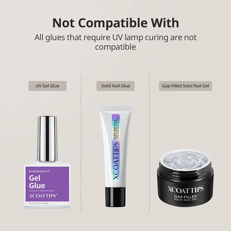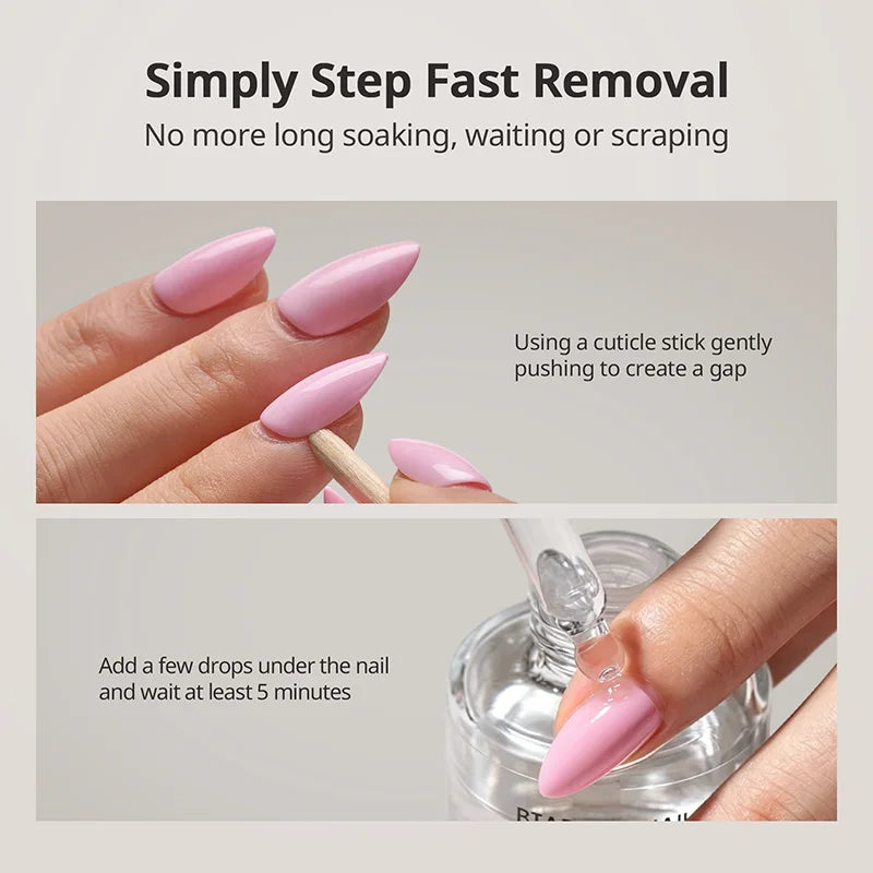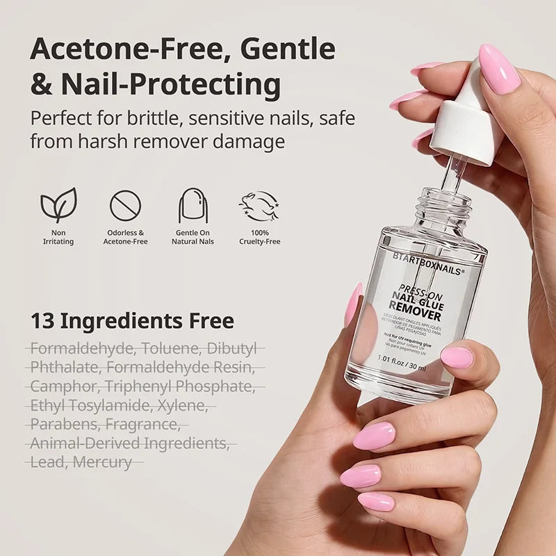 BTArtboxnails Colla per Unghie con Pennello e Solvente per Colla per Unghie è la tua soluzione tutto-in-uno per un'applicazione sicura delle unghie press-on e una rimozione delicata senza danni. La colla per unghie ultraresistente con pennello garantisce una tenuta duratura per unghie finte, mentre il solvente senza acetone scioglie in sicurezza l’adesivo senza danneggiare le unghie naturali. Entrambe le formule sono delicate, non irritanti e perfette per manicure fai-da-te.