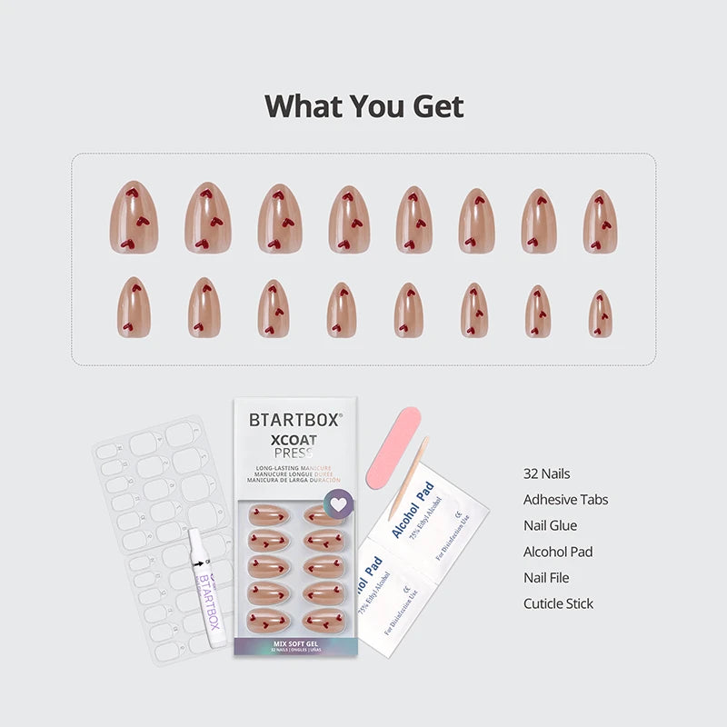 BTArtbox new released XOXO Vibe Press On Nails in 2026. They are finished products with different designs; Popular retro manicure ! Great for Valentine's Day !