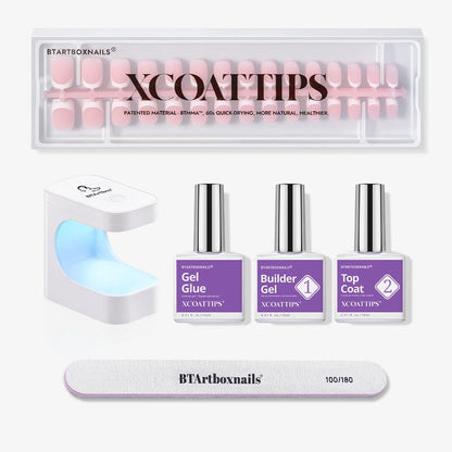 - Kit Include:Nail Tips 150pcs*1, UV Glue 15ml*1, Builder Gel 15ml (Improved formula)*1, Top Coat 15ml*1, UV Lamp*1, Nail File*1