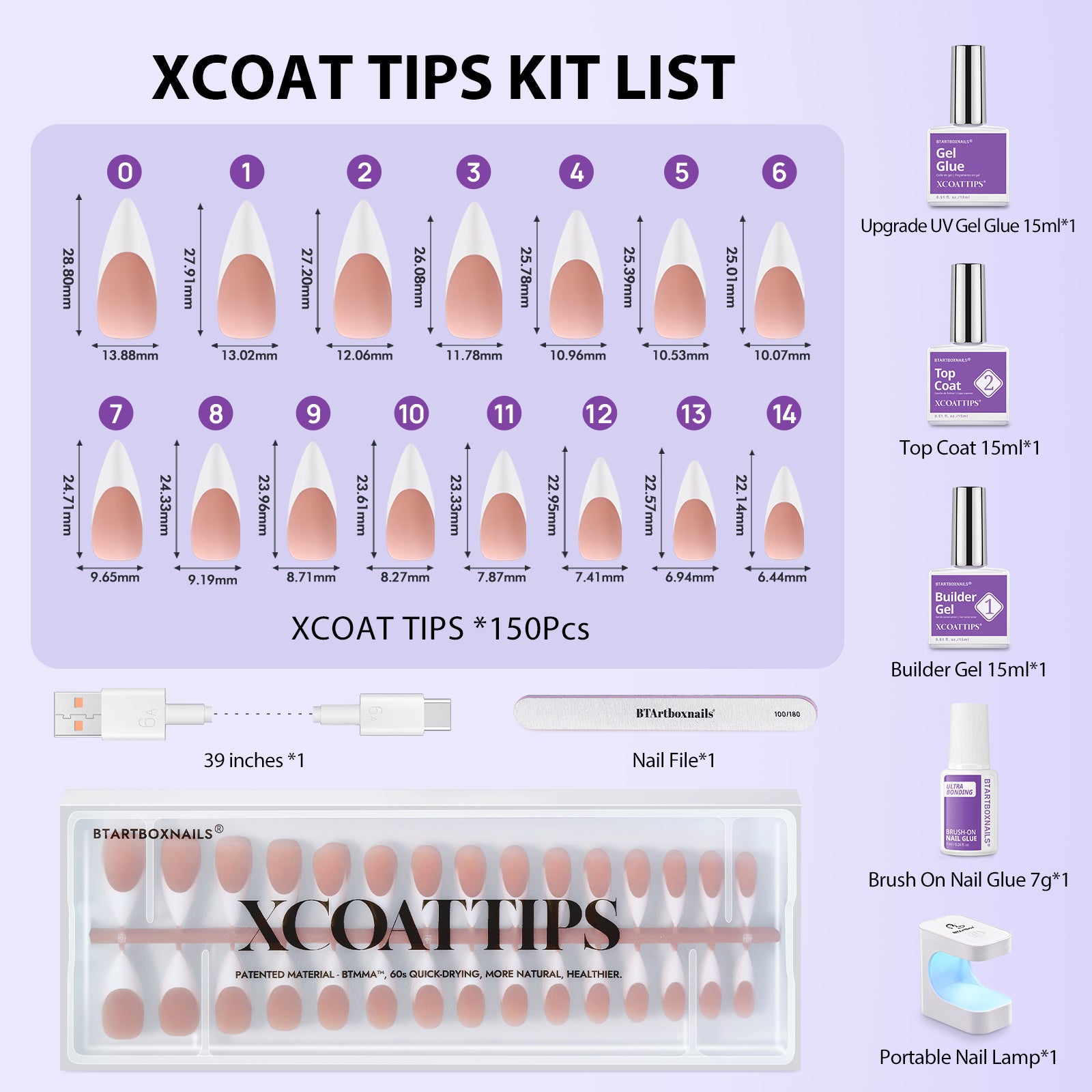 • Combined with specially patented materials and patented XCOAT process, XCOATTIPS® helps people to solve many technical problems such as shaping, color matching, and nail apex buidling.