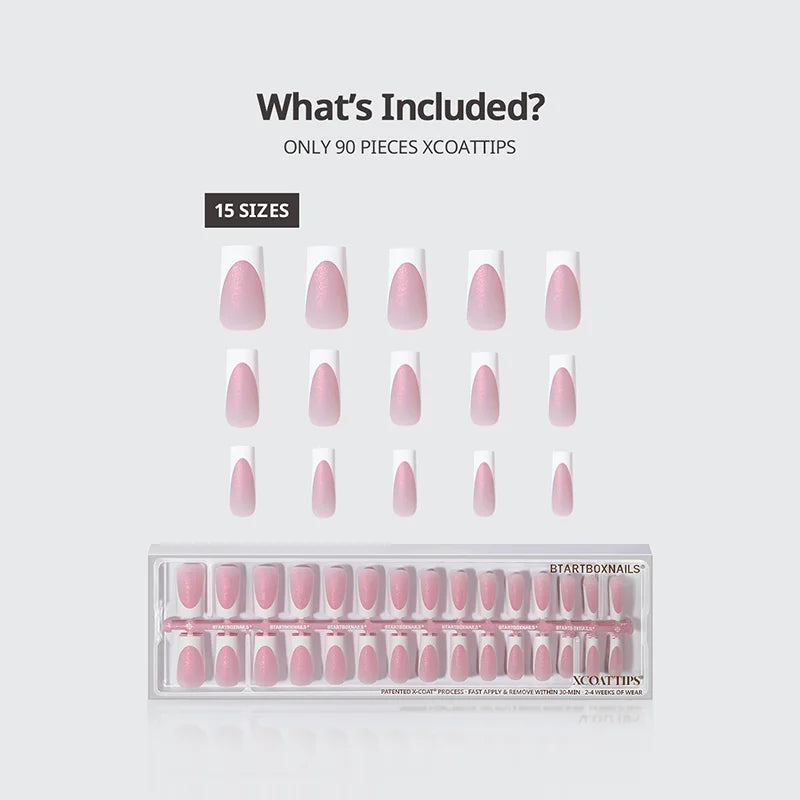 XCOATTIPS® French - Glitter Base Long Square will save you time and money, with their quick design and hard quality! Upgrade 15/16 sizes always fit your nail bed. Enjoy long-lasting over 30 days. Stun you with pre-French and pre-shape design - it's never been easier!