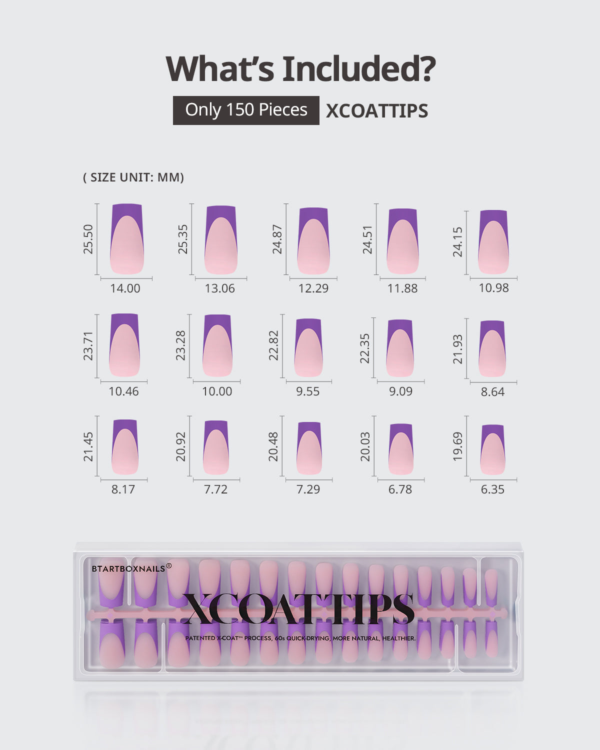 XCOATTIPS® French - Long Square Purple Pastel Tips